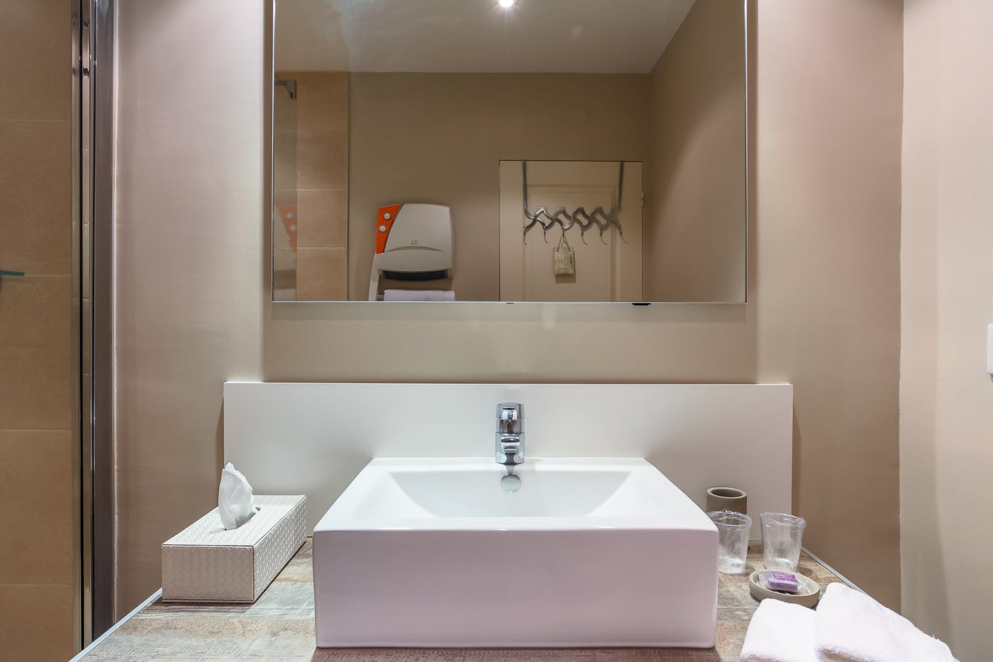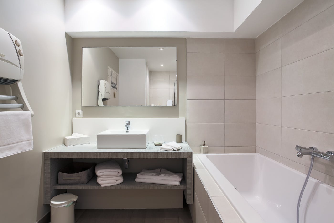 Voyagez léger ! A votre disposition dans les salles de bain : sèche cheveux, serviettes et produits de toilettes, serviettes de piscine si besoin.