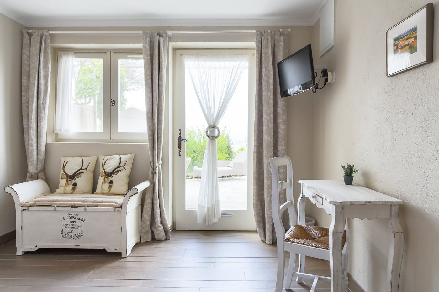 Chaque chambre dispose de sa propre entrée et une partie privative de la terrasse permet à chacun de déjeuner ou de dîner en toute quiétude, à cet effet une kitchenette (repas froid) avec frigidaire, micro onde et lave vaisselle est mise à votre disposition.